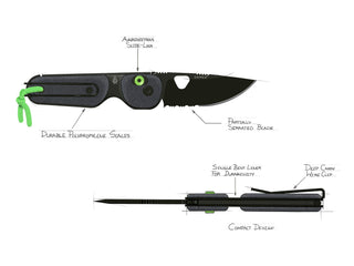 The Redstone looks different because it is different. We created a one-piece chassis design that allowed us to minimize parts and keep out dirt and grime, while providing the structure required for the mechanism and grips. It can be fully-operated (both opened and closed) with one hand, and has a slide-lock mechanism, meaning that it’s extra secure when opened, but still easy to unlock and close with one hand. The Redstone uses our very first bent-wire pocket clip– one of the very lightest and most functional clip designs out there. It also comes with a lanyard, so that you can deploy it easily or clip it to other things. Add in a partially serrated blade ready to cut or rip, and the Redstone really is the full package.
